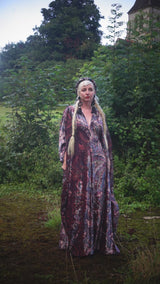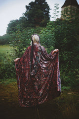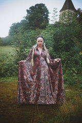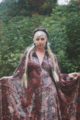An Opulent Velvet paisley Print Dusky Pink and Colour mix medium weight Velvet kaftan Gown. Extremely plush and soft to the touch