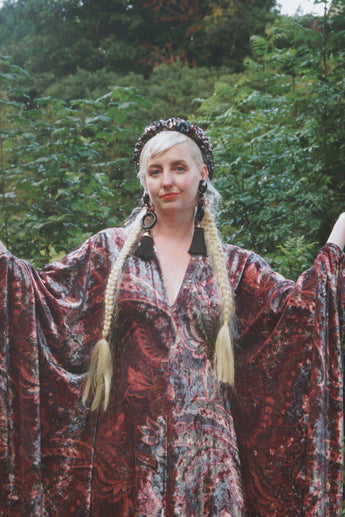 Our kaftan dresses are uniquely fitted with hidden velvet ribbons on the inside meaning YOU decide how you'd like to wear them. Choose from -