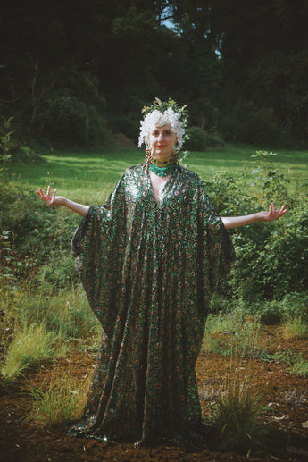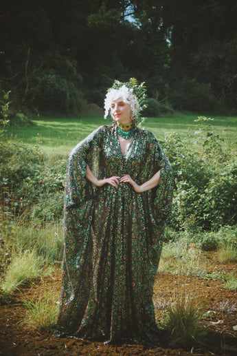 Our kaftan dresses are uniquely fitted with hidden velvet ribbons on the inside meaning YOU decide how you'd like to wear them. Choose from -