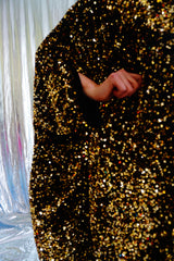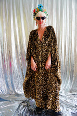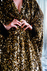Black Velvet with gold sequin V-neck Kaftan Maxi