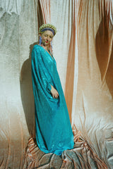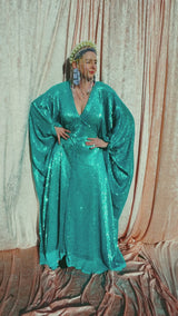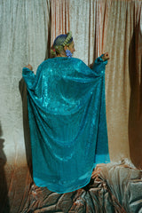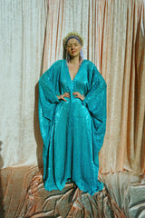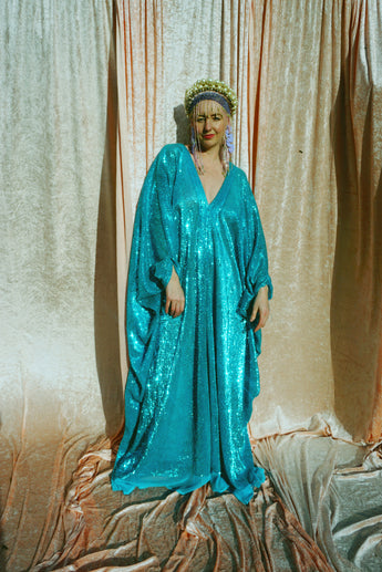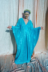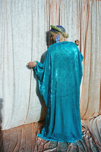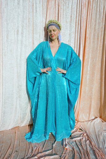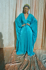 Blue Pleated Small Shimmering Sequins Kaftan Gown / Kimono Robe