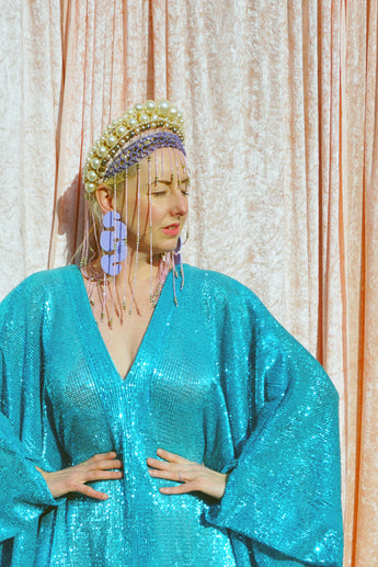 Our kaftan dresses are uniquely fitted with hidden velvet ribbons on the inside meaning YOU decide how you'd like to wear them. Choose from -
