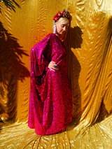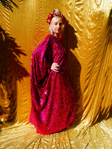 Holographic Cerise Metallic Sequin Kaftan Gown, Freesize
