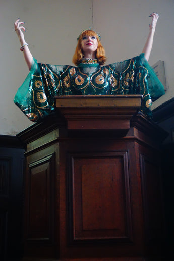 Our kaftan dresses are uniquely fitted with hidden velvet ribbons on the inside meaning YOU decide how you'd like to wear them. Choose from -