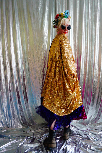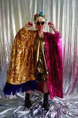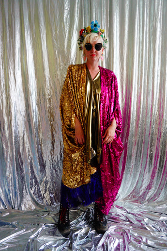 Holographic Half and Half Kimono Robe with Tinsel Fringing *SAMPLE*