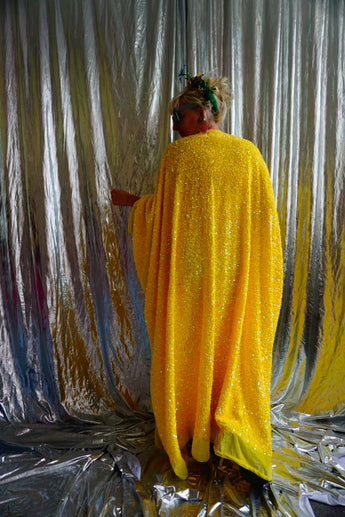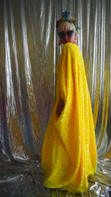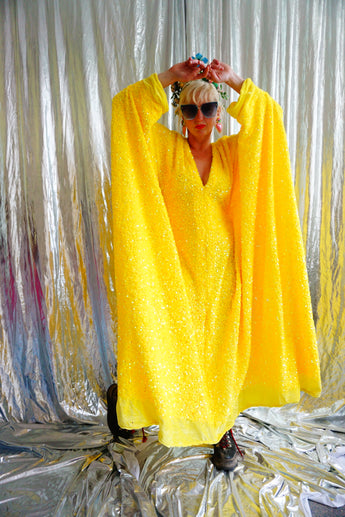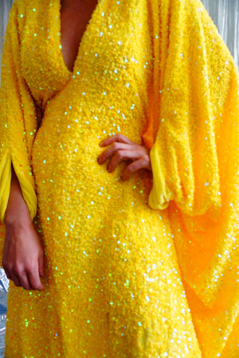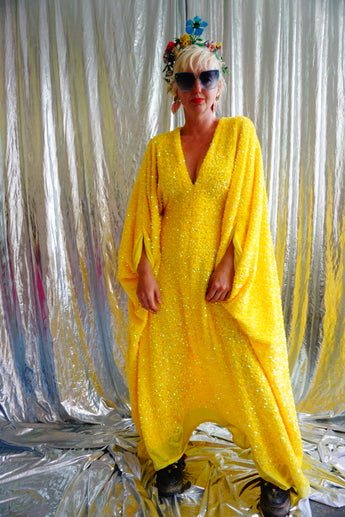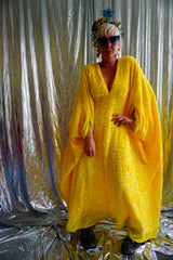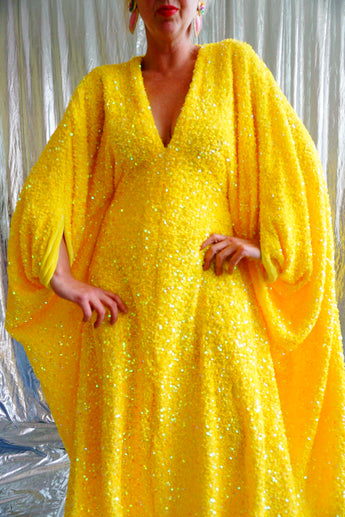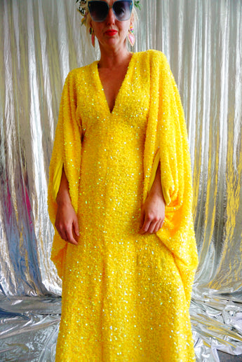 Lemon Sherbert Velvet with sparkly sequins V-neck Kaftan Maxi