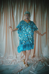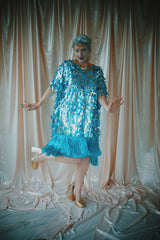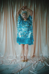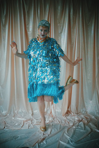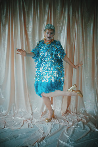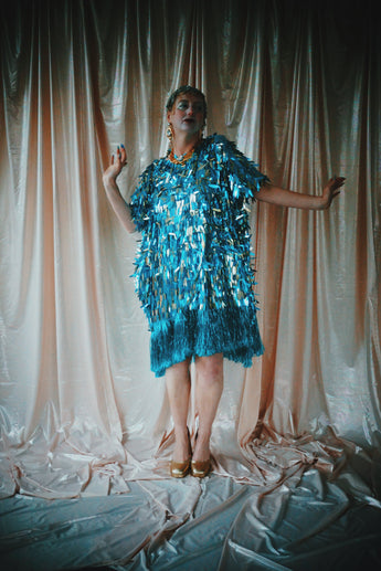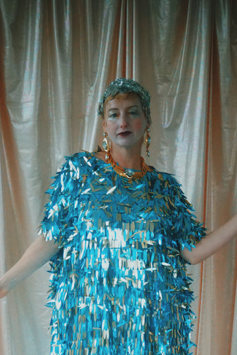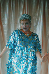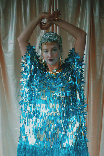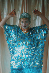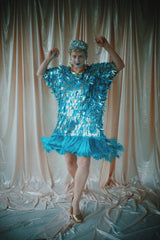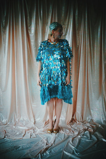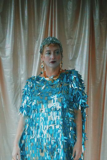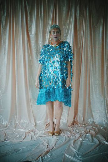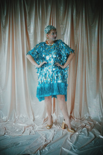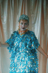 No.16 Razzle Dazzle Gold and blue round neck mini with Tinsel Trim