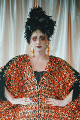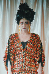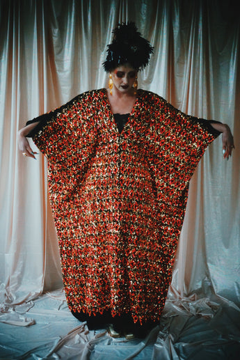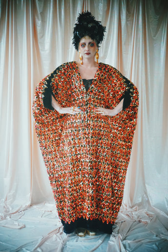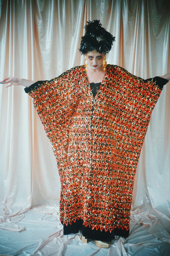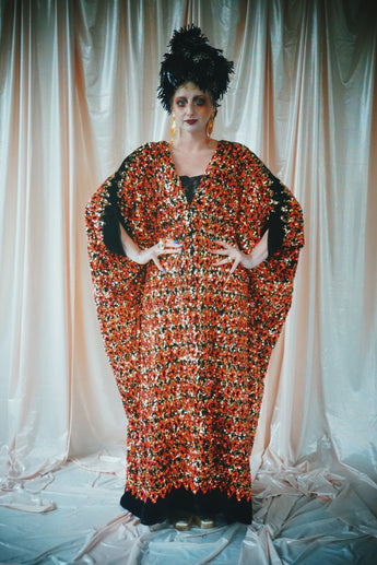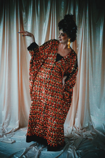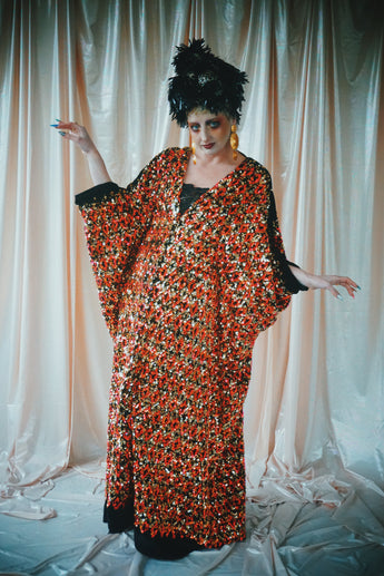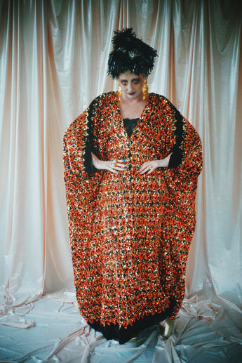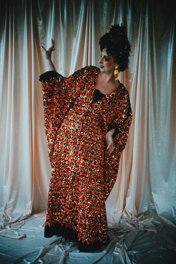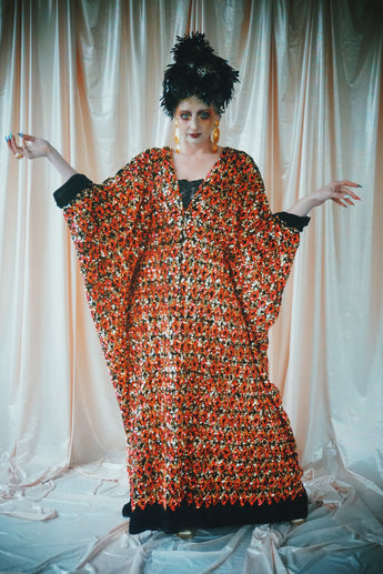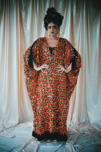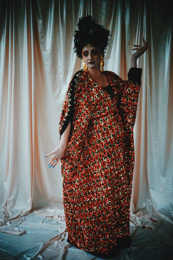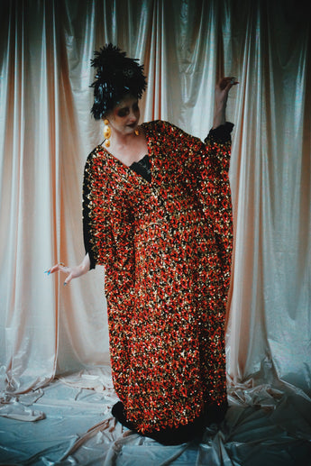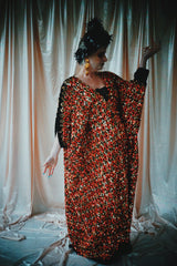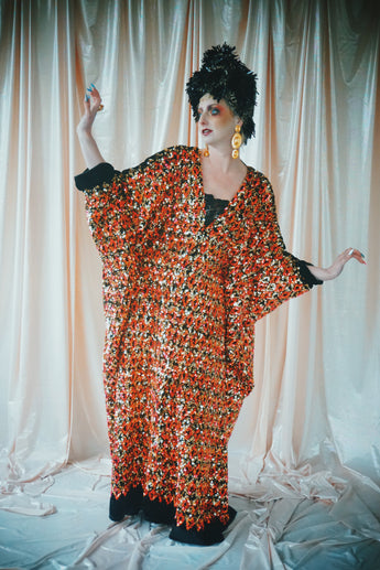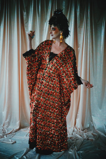 No.41 She’s all that - Hot pink and gold diamond sequins V- Neck kaftan Gown