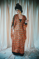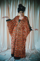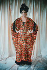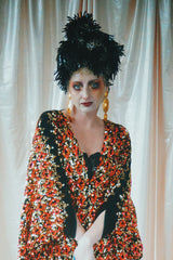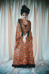 Fitted with hidden velvet ribbons on the inside meaning you can wear them two ways - 1) Free, loose and baggy, and 2) with the ribbons tied at the waist to pull the dress in and frame your figure.