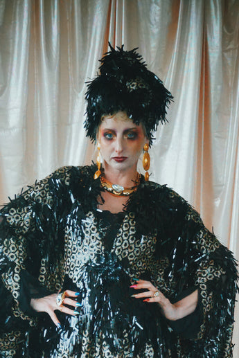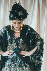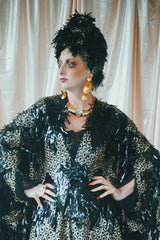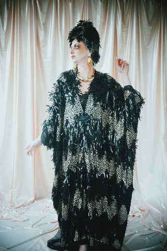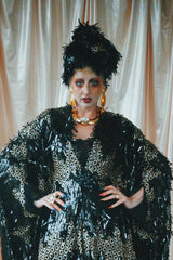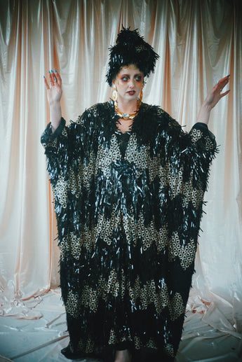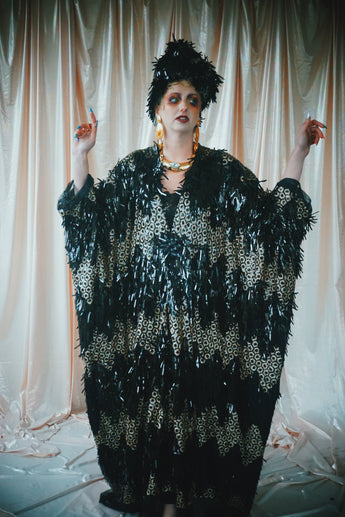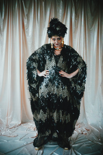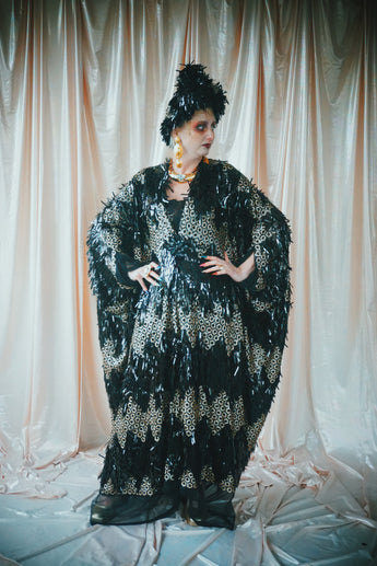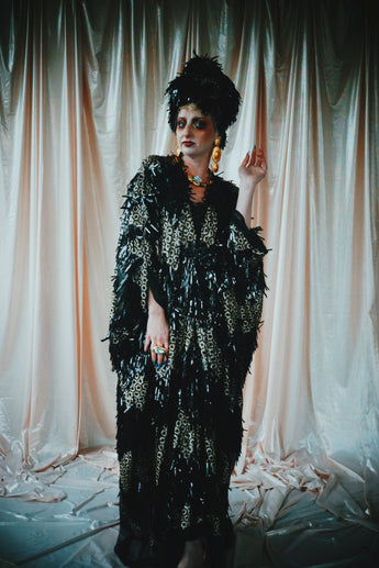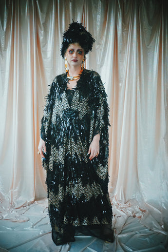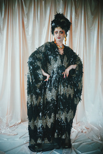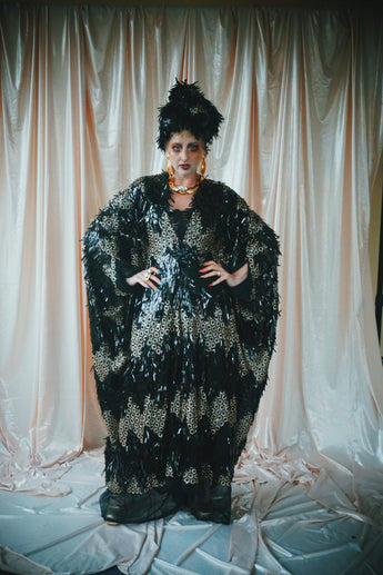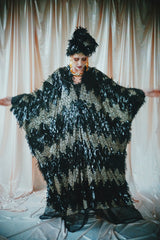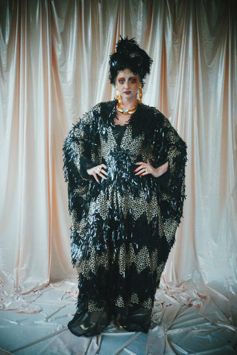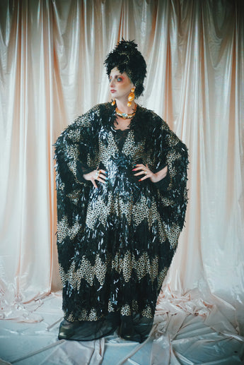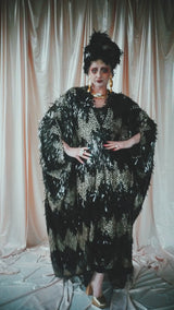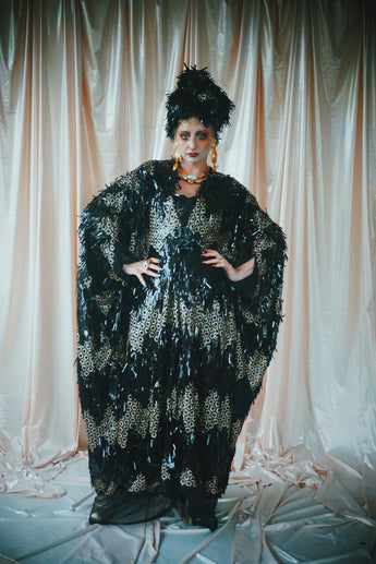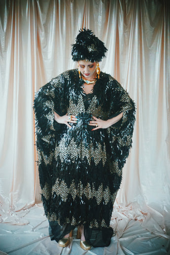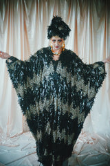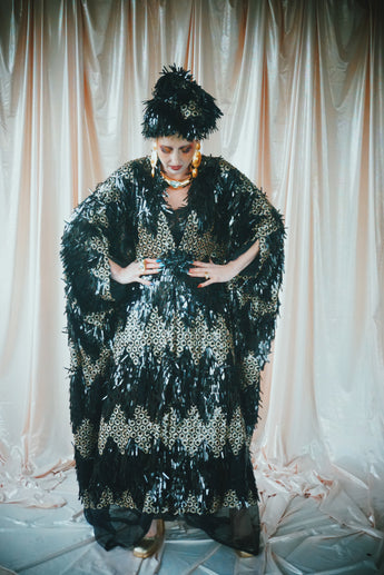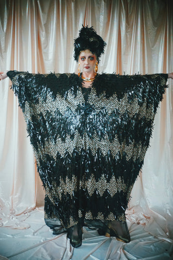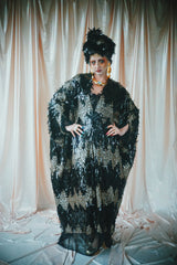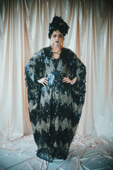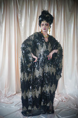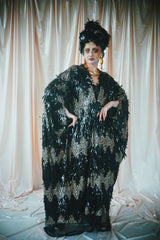 No.42 The Raven - black and gold sequin V- Neck kaftan Gown