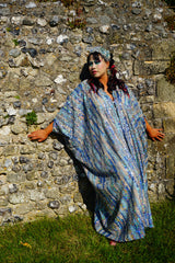Fitted with hidden velvet ribbons on the inside meaning you can wear them two ways - 1) Free, loose and baggy, and 2) with the ribbons tied at the waist to pull the dress in and frame your figure.