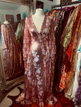 Rose sequin and floral iridescent sequin Thigh high split V-neck Kaftan gown