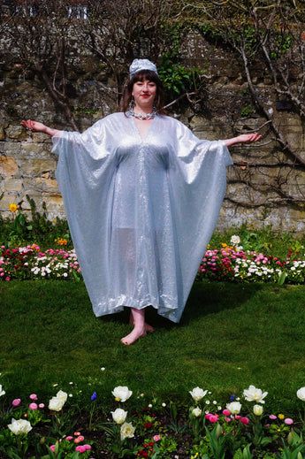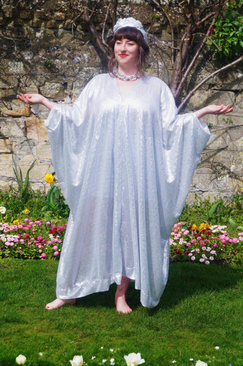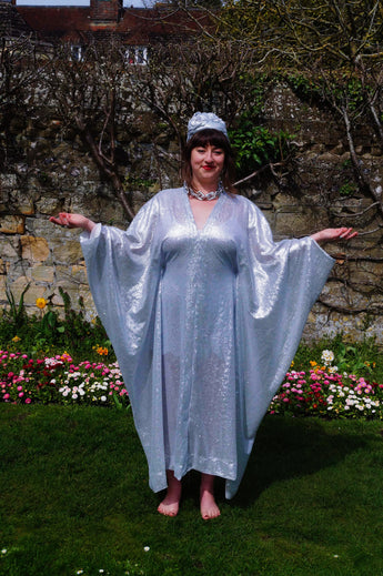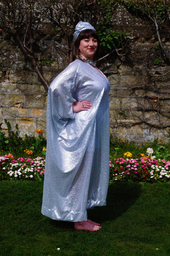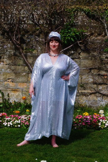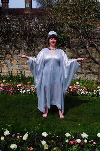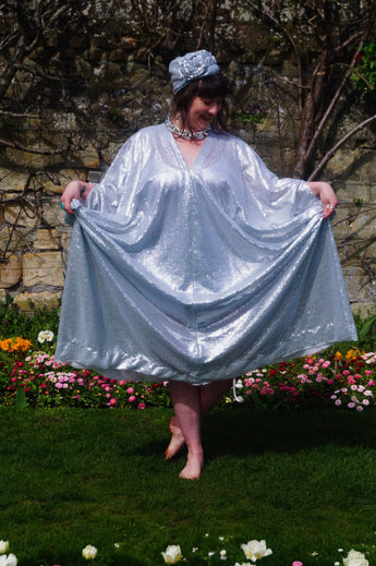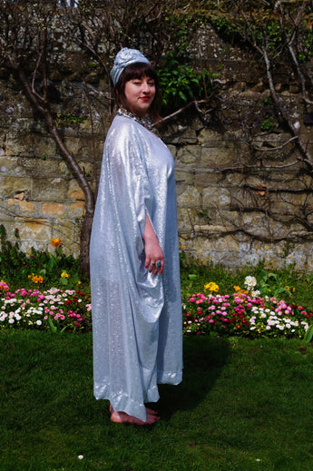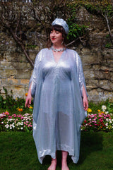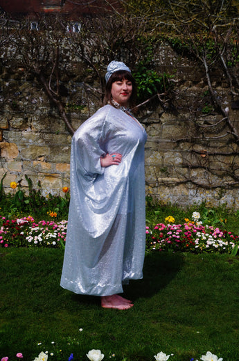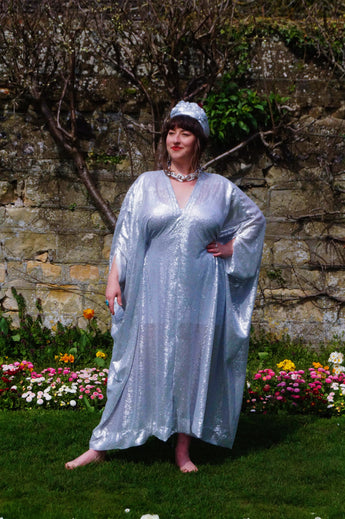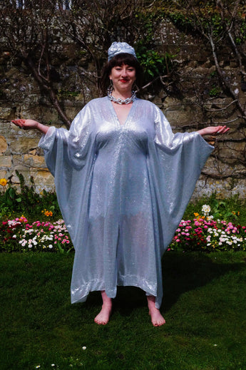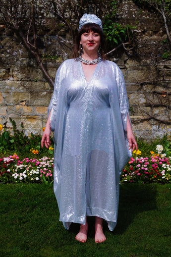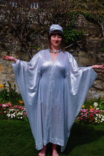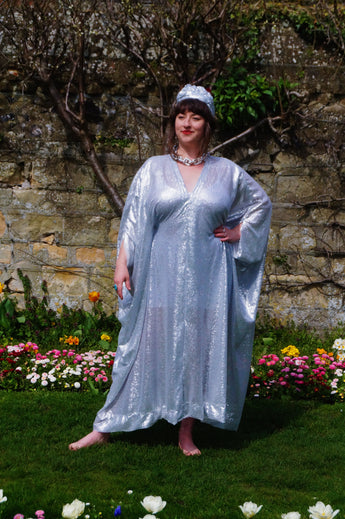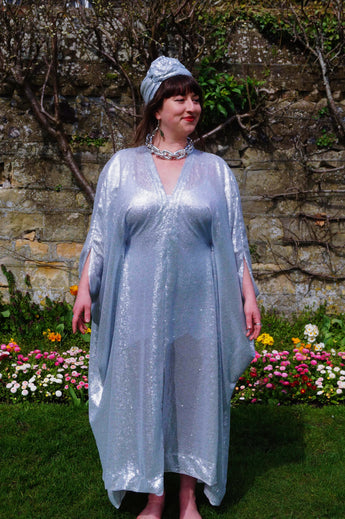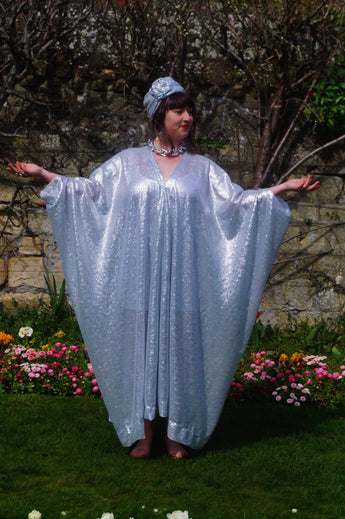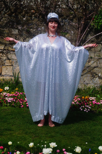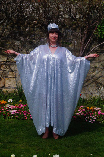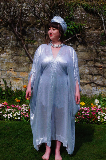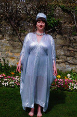 Lightweight semi-sheer square mirror sequin kaftan dress. Ideal for the warmer weather and floating around festivals, parties, the garden and anywhere else you might roam and sparkle!