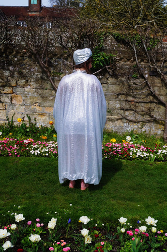 Matte Silver Sequin Kaftan Dress