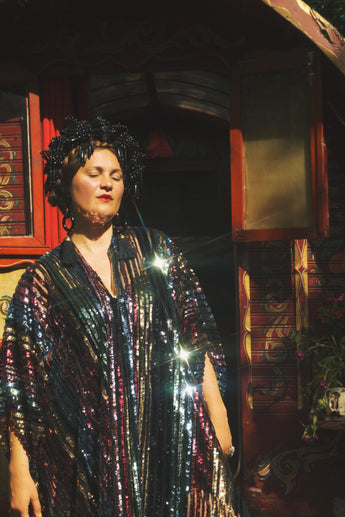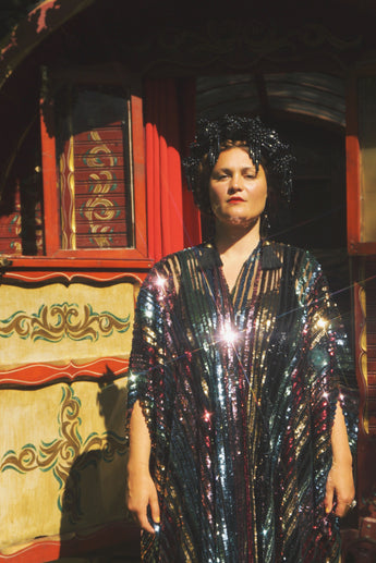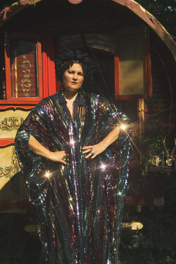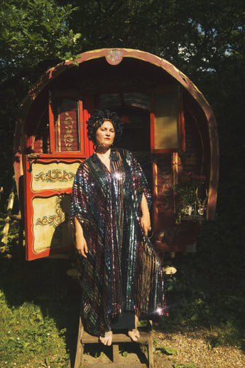Our kaftan dresses are uniquely fitted with hidden velvet ribbons inside, meaning YOU decide how you'd like to wear them. Choose from -
