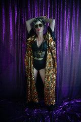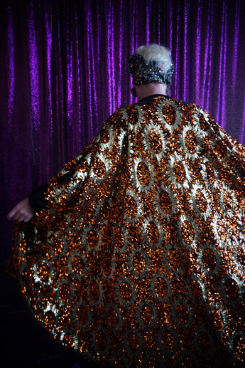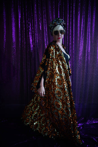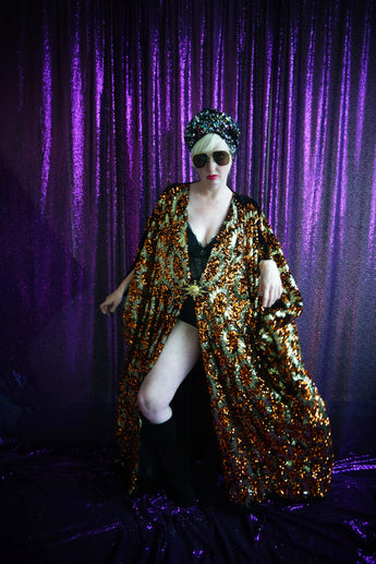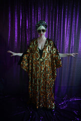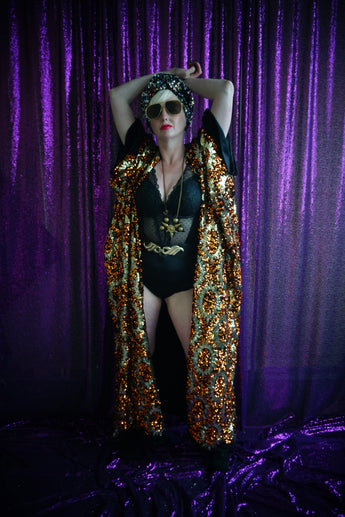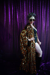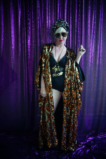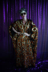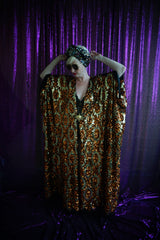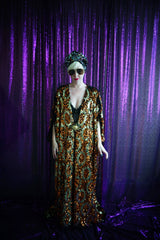 Velvet based Orange and gold Sequin Sun Kaftan gown / Kimono Robe