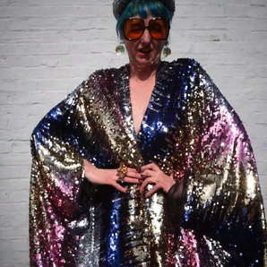 Quick view Velvet Blue and Pink patterned sequin Kaftan - Ruched centre batwing style From £155.00 /Choose options