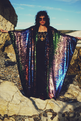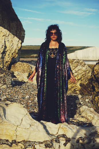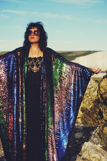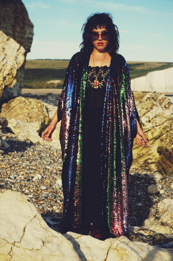 Siren Sequins - pale pink, royal blue, emerald green and bronze brown - Kimono Robe