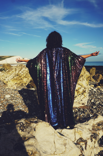 Siren Sequins - pale pink, royal blue, emerald green and bronze brown - Slash Neck