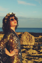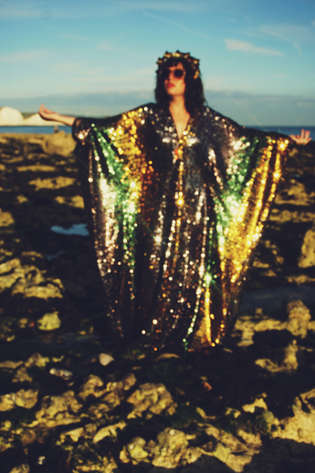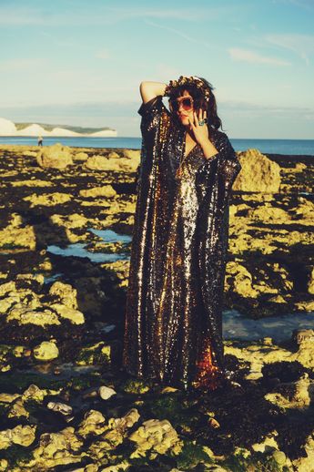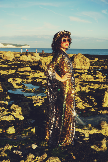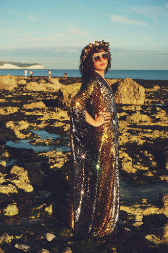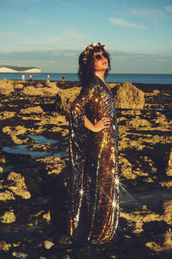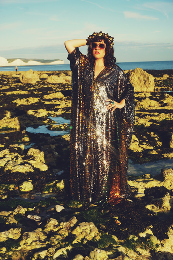 Siren Sequins - sequins in Bottle Green, Gunmetal Grey and Gold - V-neck