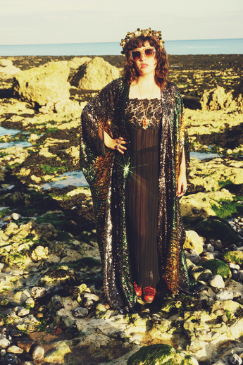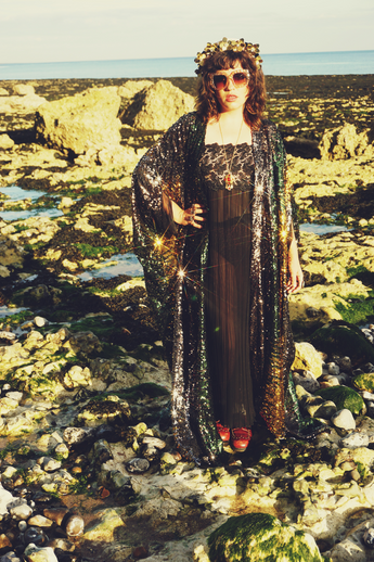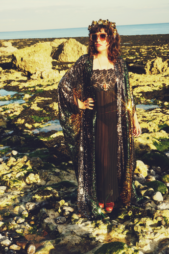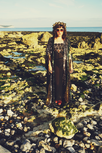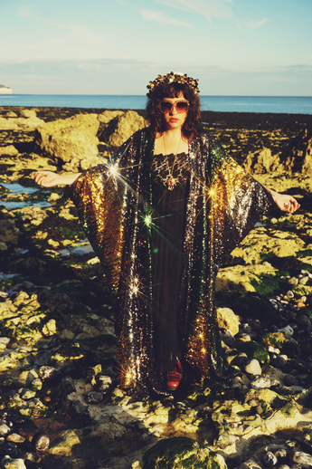 Siren Sequins - Bottle Green, Gunmetal Grey and Gold - Kimono Robe