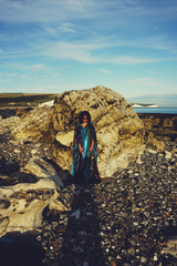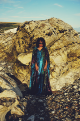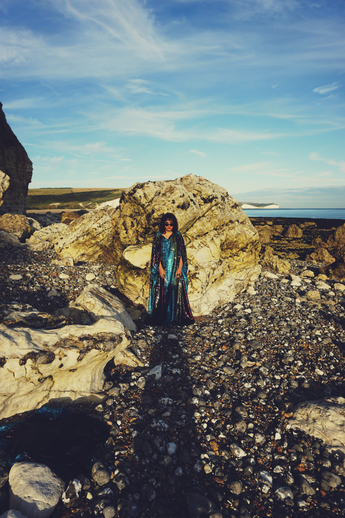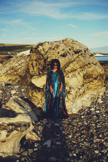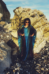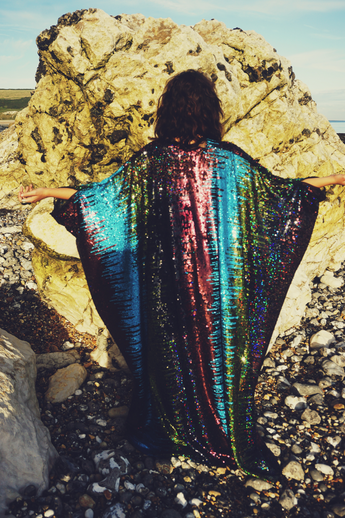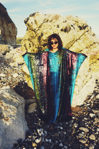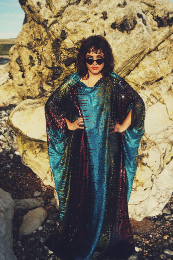 Our kaftan dresses are uniquely fitted with hidden velvet ribbons on the inside meaning you can wear them two ways - 1) Free, loose and baggy, and 2) with the ribbons tied at the waist to pull the dress in and frame your figure.