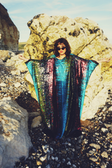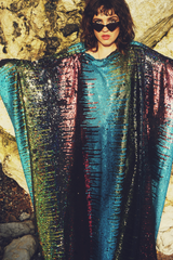 Siren Sequins - holographic yellow, glittered turquoise blue, black petrol holographic and bronzed red - Slash Neck