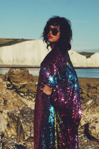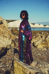 Siren Sequins - sequins in magenta pink, Gold, turquoise blue and ruby red - V-neck