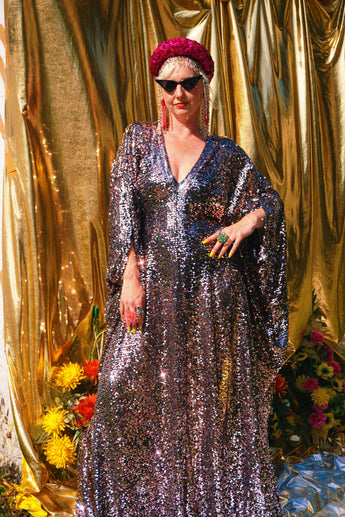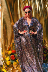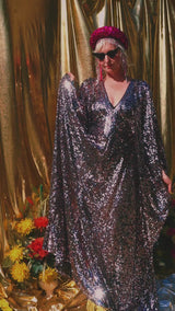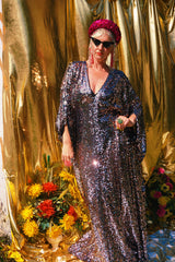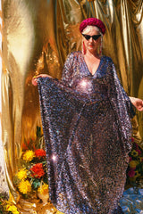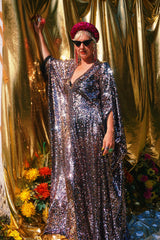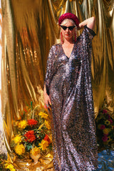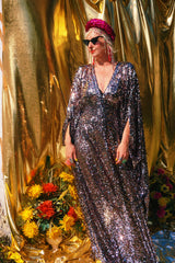 Sundown Shimmer Sequin V Neck Kaftan Gown, Freesize
