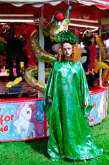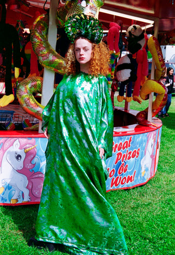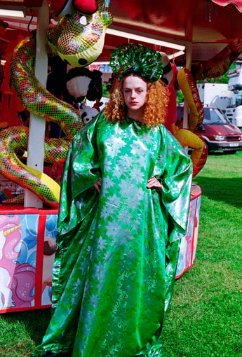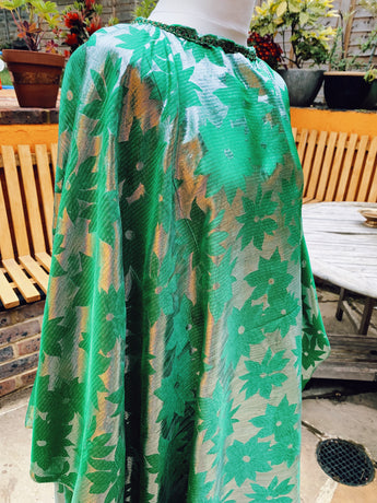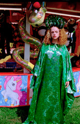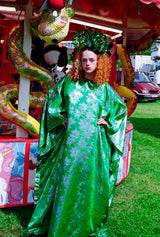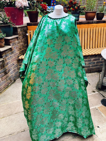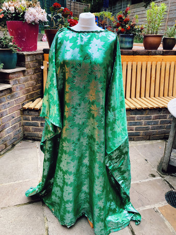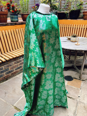 ONE OF A KIND reversible silver and green brocade satin Dress