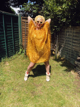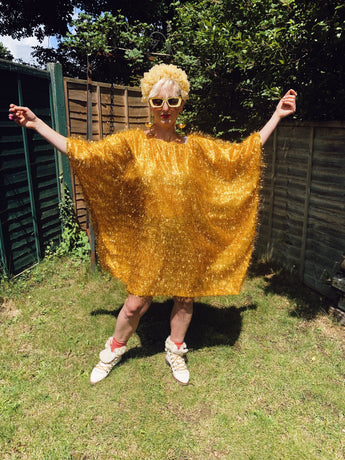 Our latest TINSEL SHIMMER GLITTER kaftans are lightweight, loose and easy to move around in. Perfect for parties, festivals, the beach or the red carpet. The fabric is quite sheer so may want to wear with a slip or something warm underneath, or just your normal underwear. Perfect for keeping airy in the summer months, or wear with layers underneath in the winter.