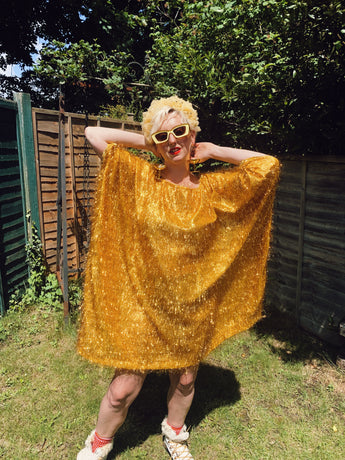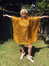 TINSEL Mini-Dress / Tee- Gold shimmer kaftan Dress