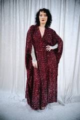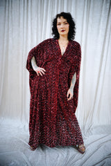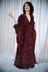 She-Devil Red Sequin Velvet V-Neck Kaftan Gown