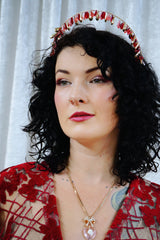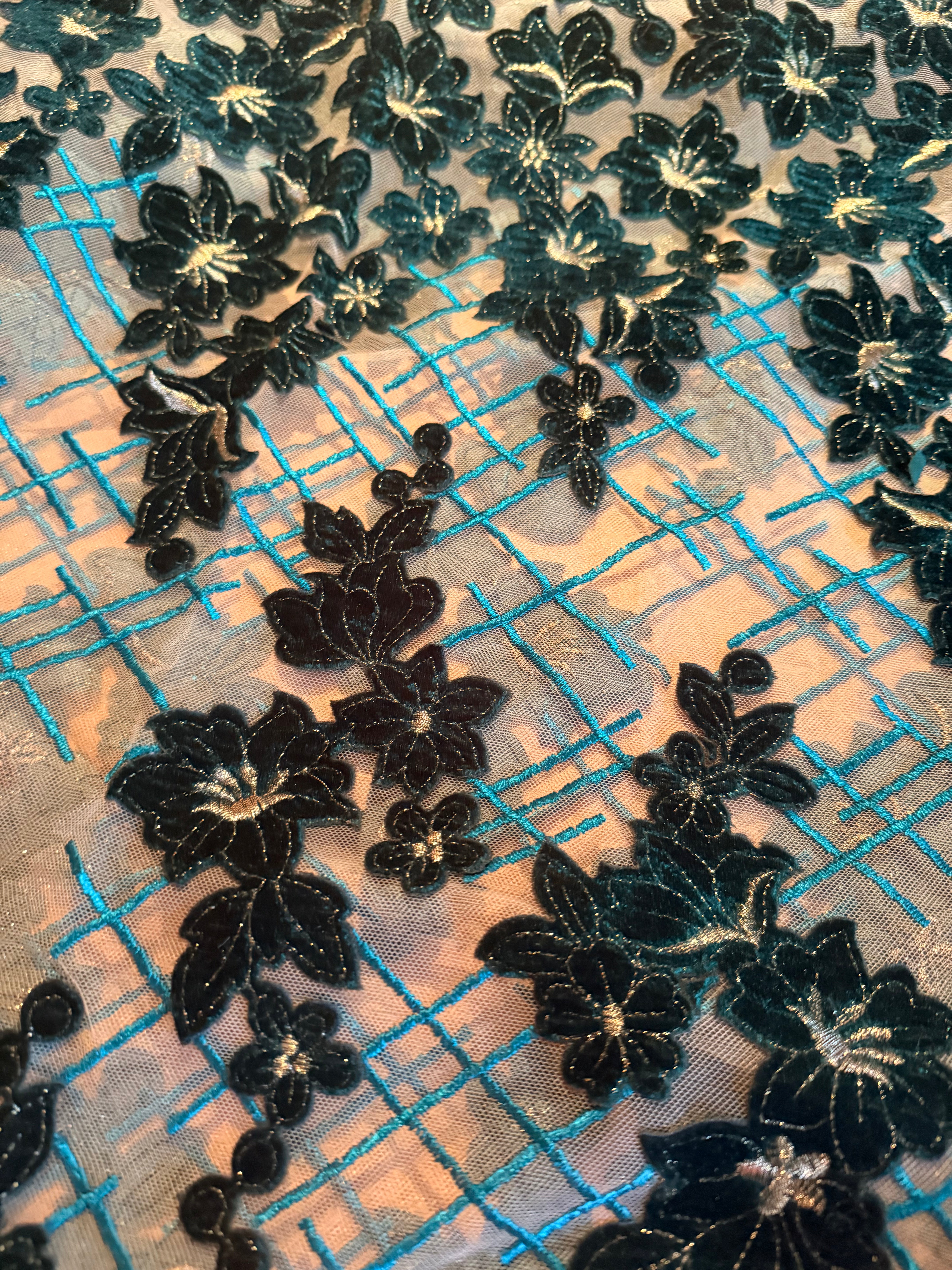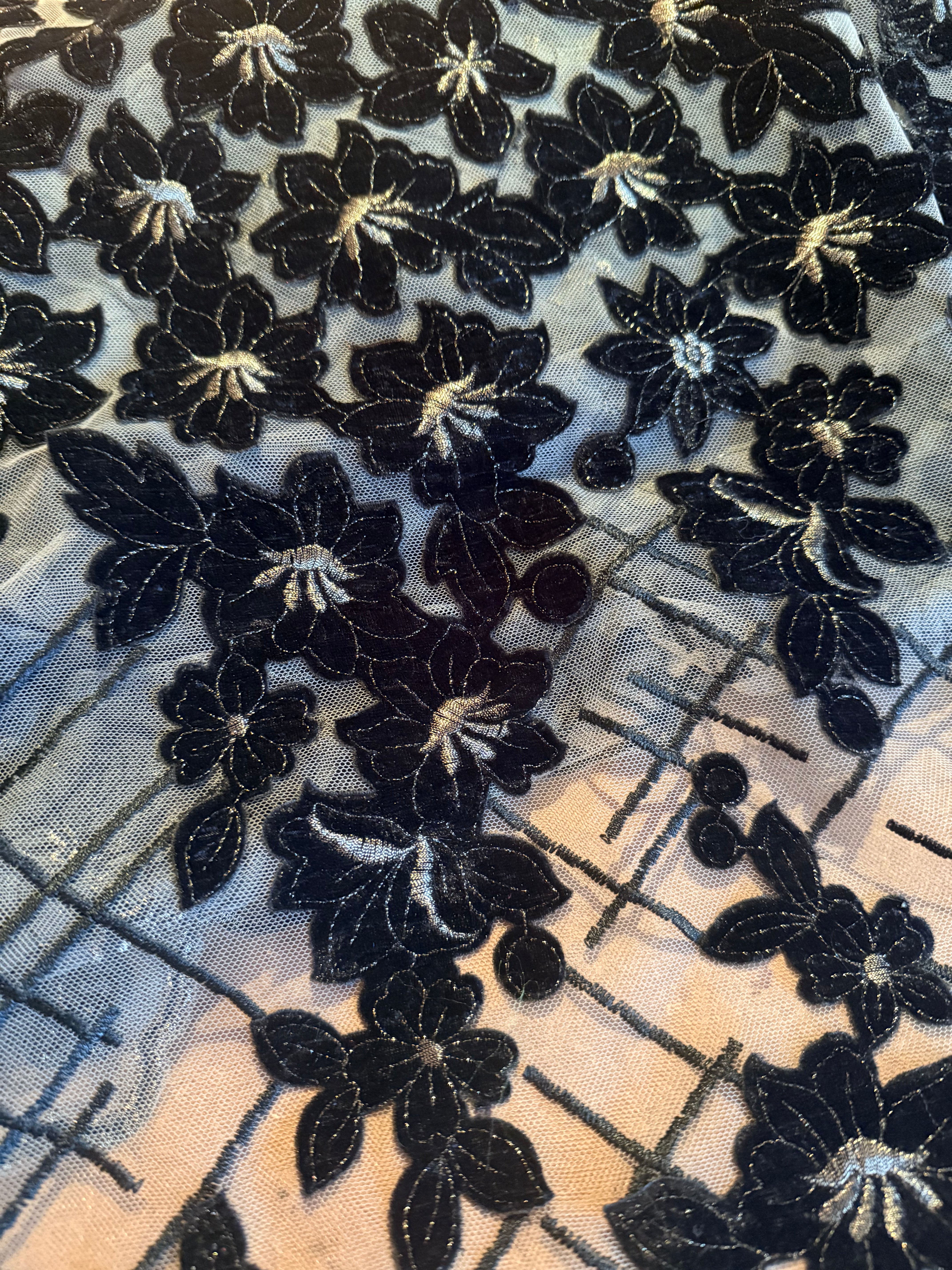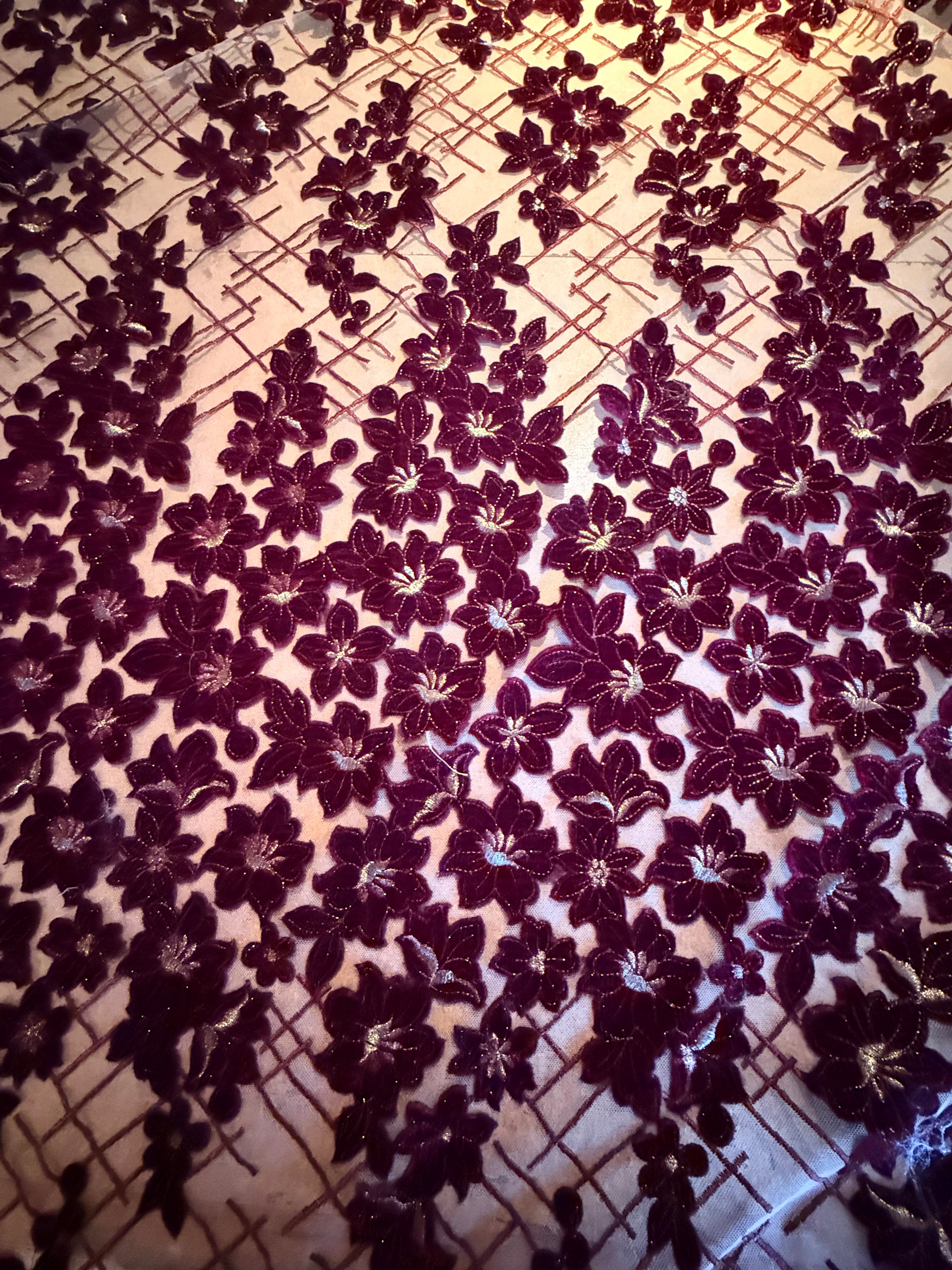 Red Flocked Velvet Sheer V-Neck Kaftan Gown features a fine mesh base with raised velvet florals throughout. The perfect level of sheerness. Available in a range of colourways.