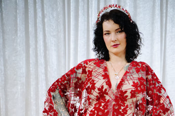 Our kaftan dresses are uniquely fitted with hidden velvet ribbons inside, meaning YOU decide how you'd like to wear them. Choose from -