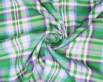 "Buffy" Green, Lilac and Purple Tartan Print Maxi Kaftan Dress