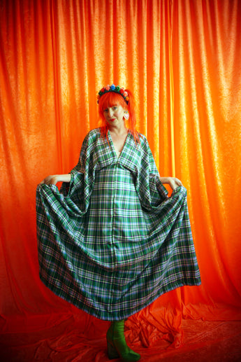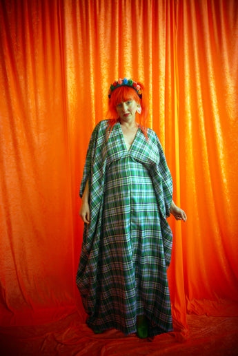Statement Comfortable Kaftan in a tartan print with a nod to the 90/00s