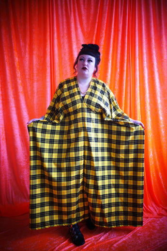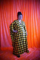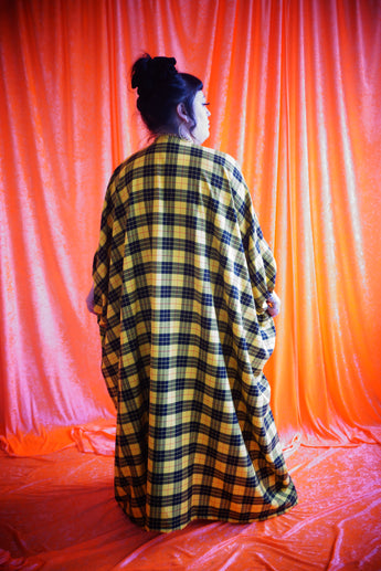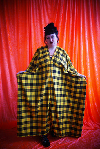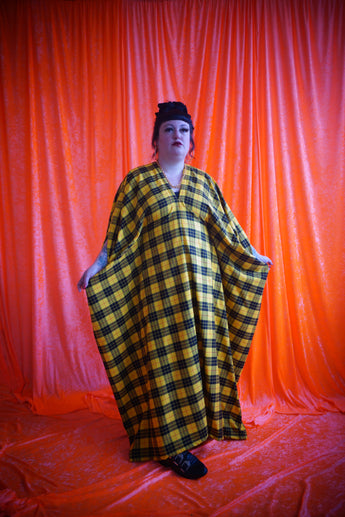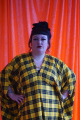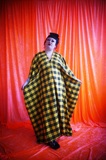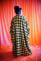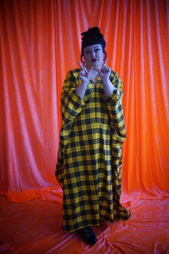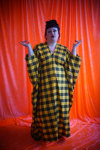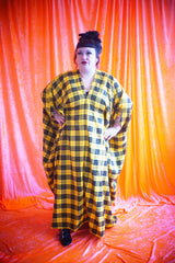 "Cher" Yellow and Black Tartan cotton Maxi Kaftan Dress