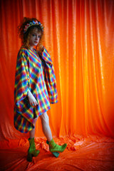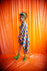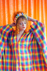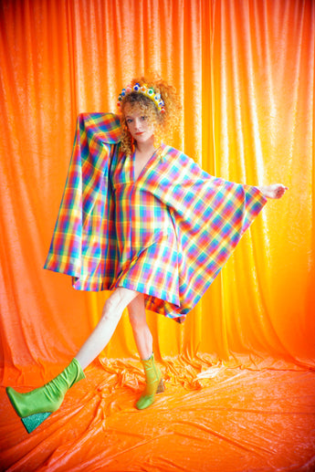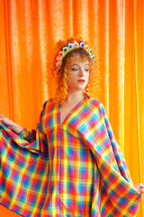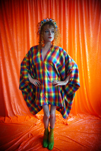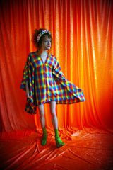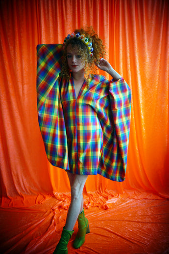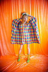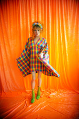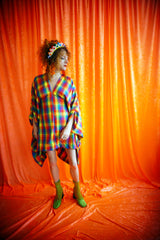 "Clarissa" Rainbow Brights Tartan cotton Mini Kaftan Dress
