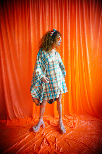Statement Comfortable Kaftan in a tartan print with a nod to the 90/00s