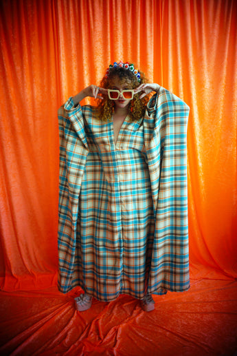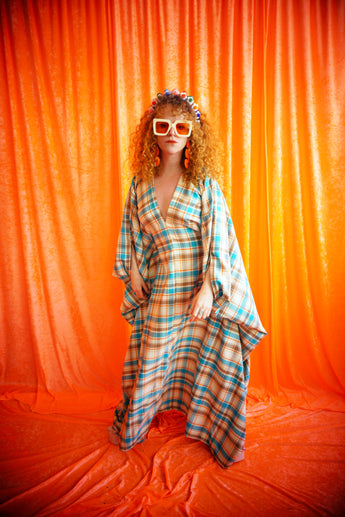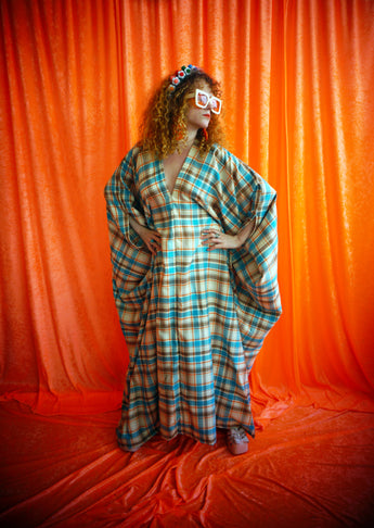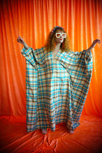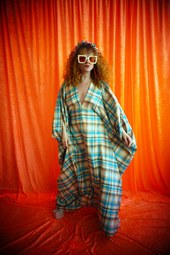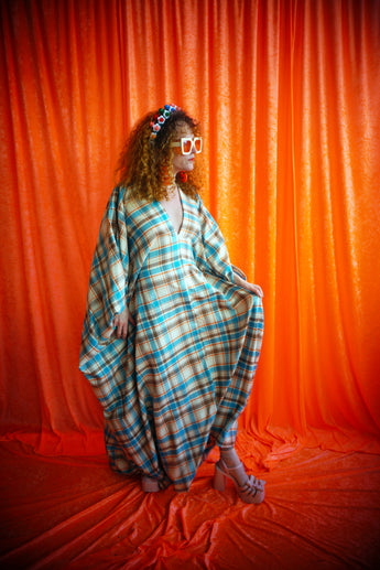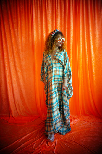 Statement Comfortable Kaftan in a tartan print with a nod to the 90/00s
