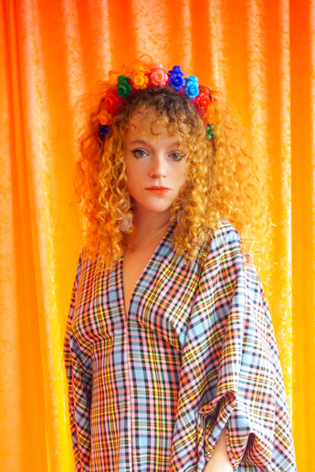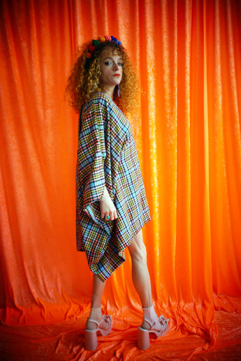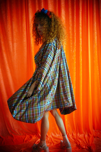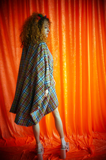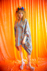 "Gwen" Multi Rainbow Tartan cotton Mini Kaftan Dress