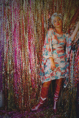 Worn with our hidden ribbons tied to cinch in at the waist (can also be worn loose).