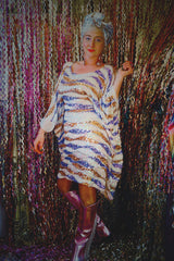 Purple, White, and Gold Wave Mini Dress Kaftan