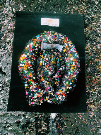 Introducing our dazzling Rainbow Sequin Turband – the perfect accessory to elevate any outfit with effortless glam! This chic, stretchy headband wraps elegantly around the head, offering a comfortable yet secure fit for all-day wear. Adorned with shimmering sequins, it catches the light beautifully, adding a touch of sparkle to both day and evening looks. Ideal for parties, festivals, or simply adding a bold accent to your everyday style, this turband is versatile and stylish. Effortlessly blend fashion with function and make a statement with this must-have accessory!