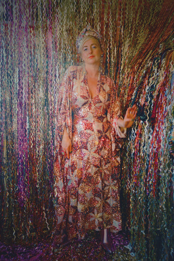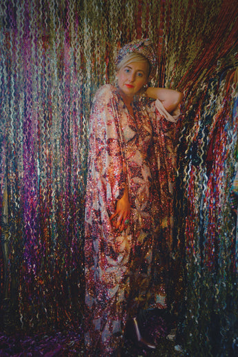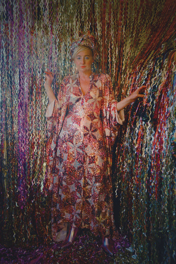 Our kaftan dresses are uniquely fitted with hidden velvet ribbons on the inside meaning YOU decide how you'd like to wear them. Choose from -