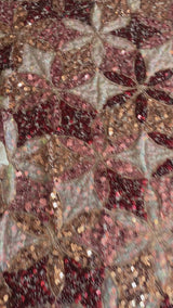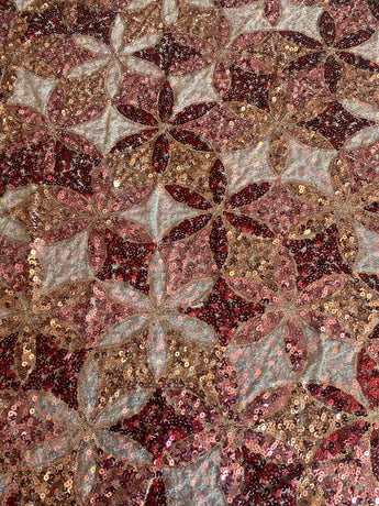 Luxe Mesh stretch Sequin red, pink, and white flower pattern v-neck maxi dress kaftan. Choose from a side thigh-high split or standard gown style (standard style pictured).