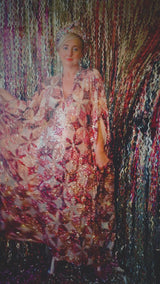 Red, Pink, and White Flower V-Neck Maxi Dress Kaftan
