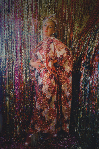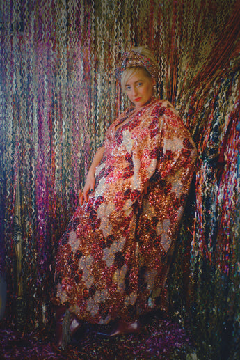 Our kaftan dresses are uniquely fitted with hidden velvet ribbons on the inside meaning YOU decide how you'd like to wear them. Choose from -