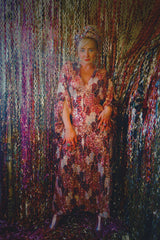 Red, Pink and White Jewel V-Neck Maxi Dress Kaftan